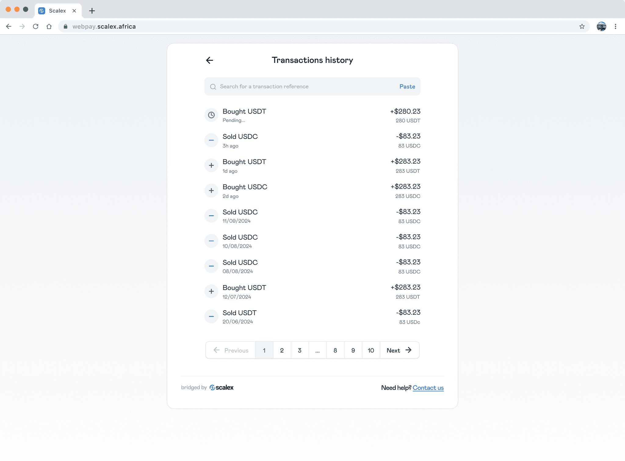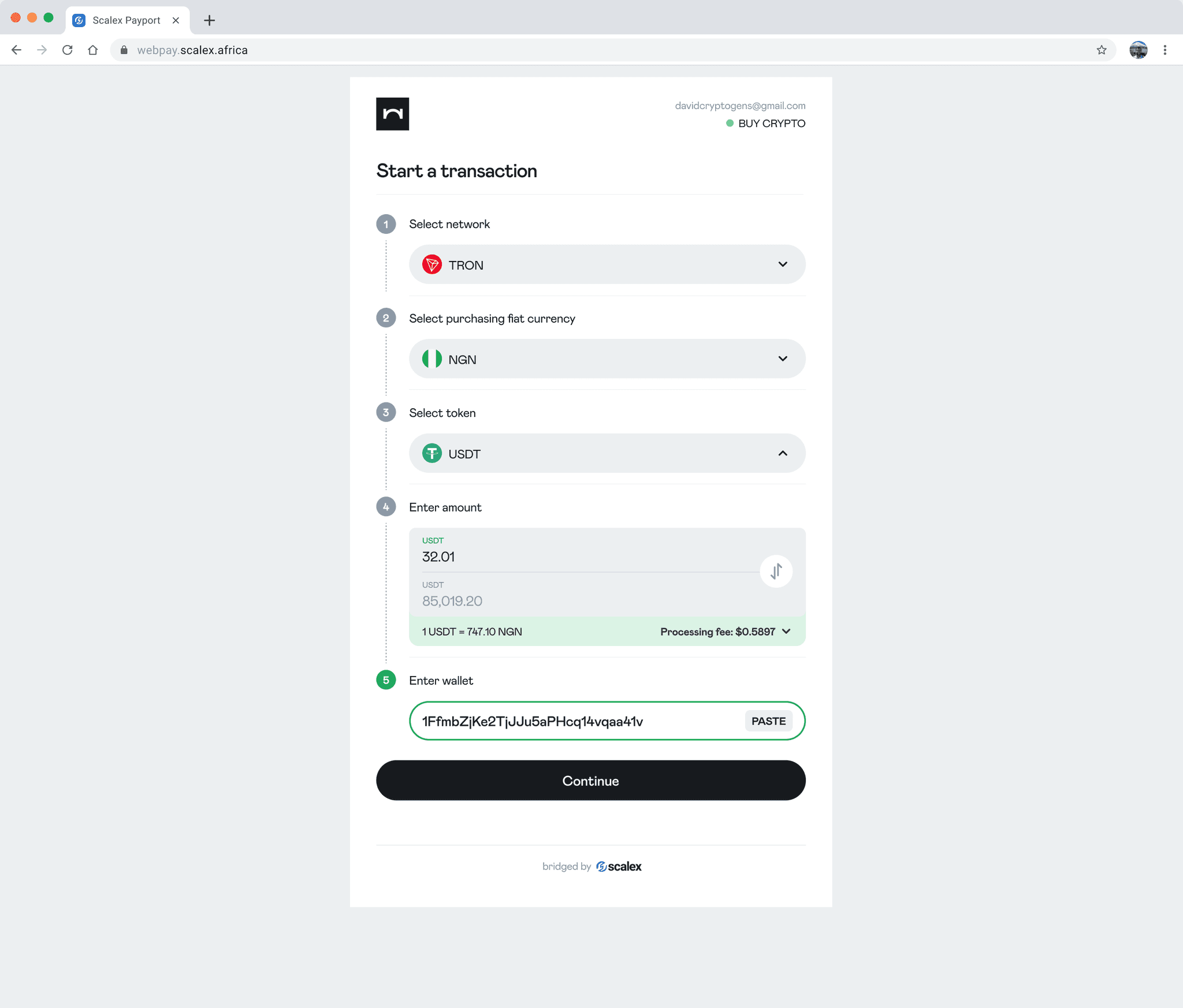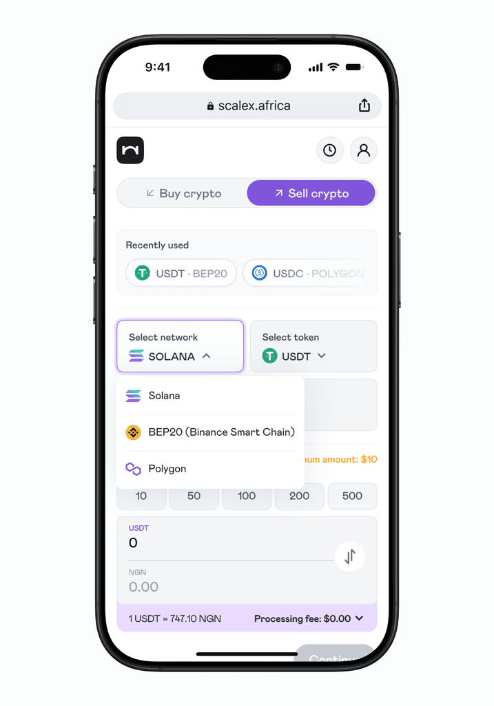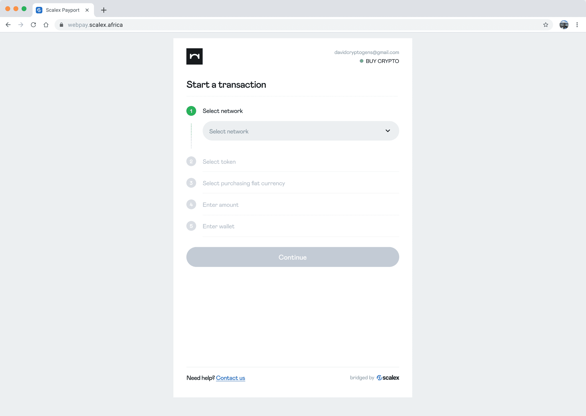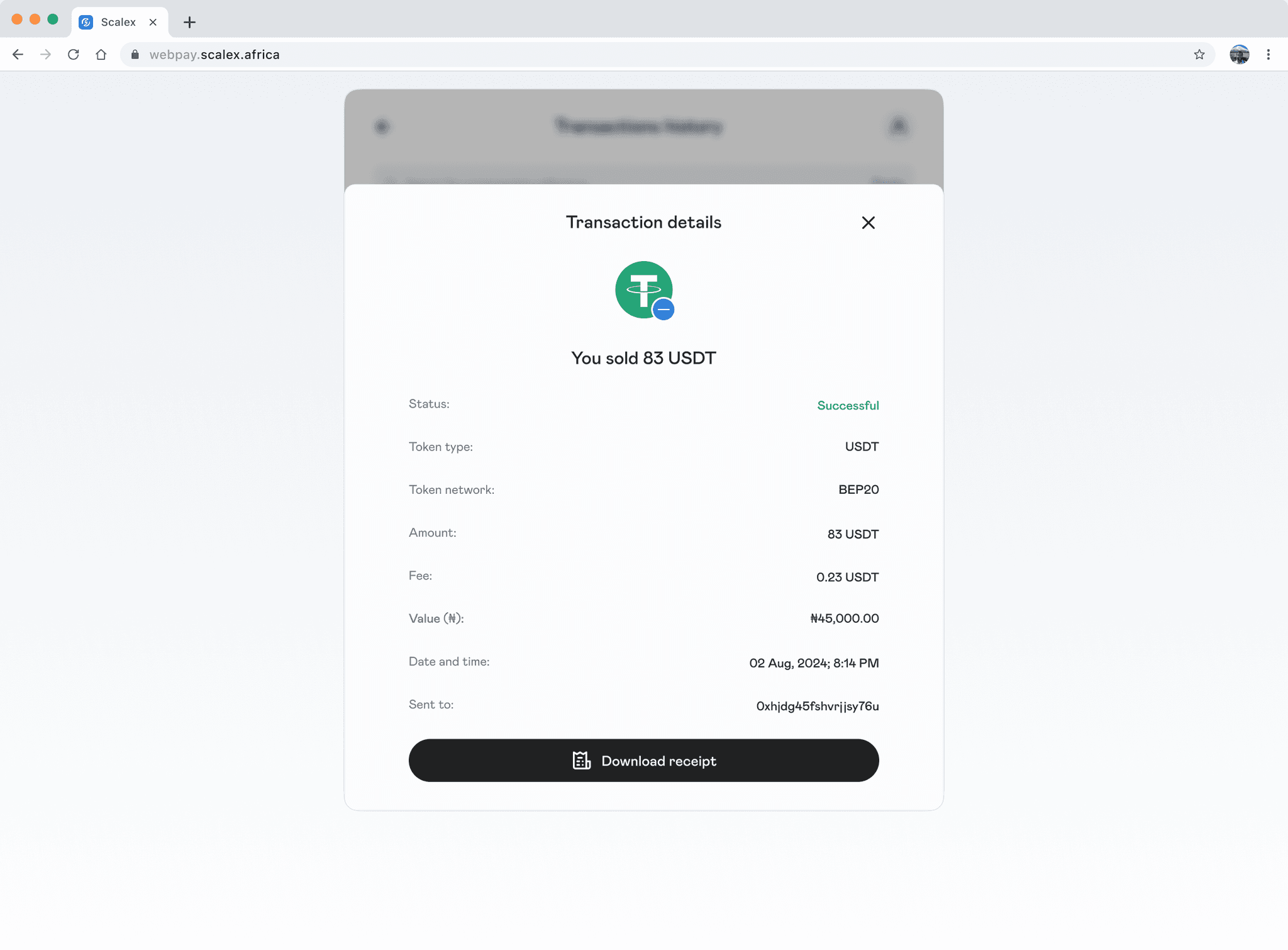 Checkout is a web app powered by Scalex where users can swap stablecoins (USDC and USDT) to fiat.